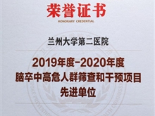 2019-2020脑卒中高危人群筛查和干预项目先进单位