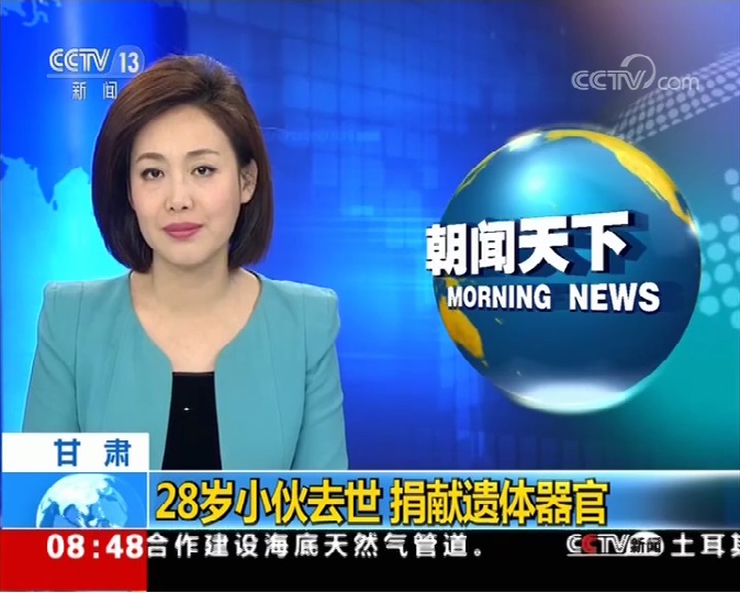 【中央电视台】《朝闻天下》栏目播出甘肃28岁小伙去世捐献…