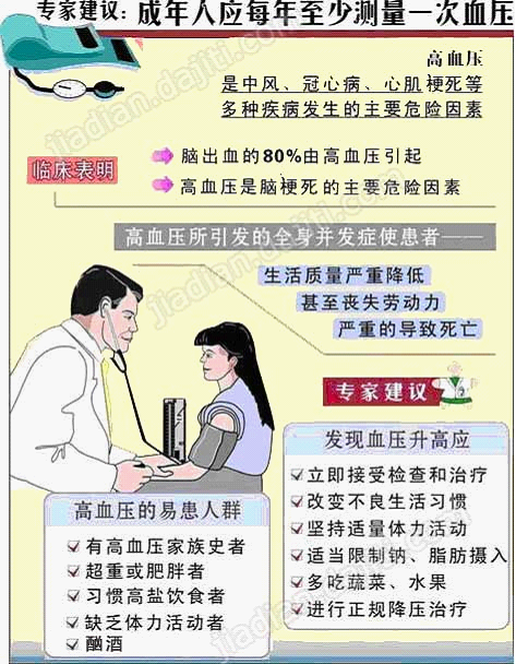 失语等最终导致心、脑、肾等主要器官受到严重的损伤,能引起脑卒中(中风)、冠心病、肾功能衰竭等严重后果。特别是被称为“健康第一杀手”的脑卒中(中风),血压越高意味着脑卒中(中风)的发生机率越高。