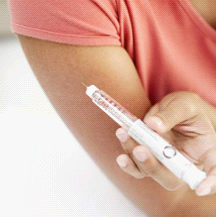 选择注射部位:上臂前外侧部、大腿前外侧部、臀部和腹部。注射部位胰岛素的吸收速度由快到慢依次为:腹部、上臂、大腿、臀部。局部运动可以加快吸收。如果要参加锻炼,应避免在上臂和大腿上注射,以免因肢体运动,加速对胰岛素的吸收,导致运动后低血糖。洗热水澡或按摩可以使胰岛素在注射后很快起效,所以注射胰岛素后未进餐前勿洗澡,以防低血糖的发生而出现意外。