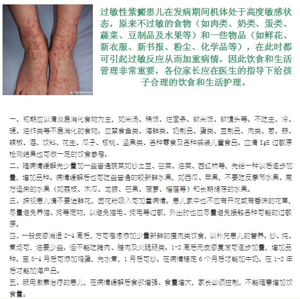 过敏性紫癜患儿的饮食指导及注意事项