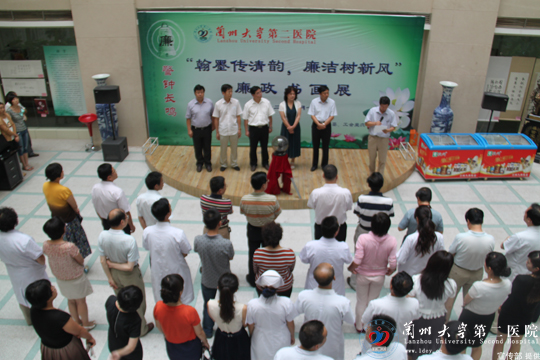 在开展仪式上,党委副书记、纪委书记童明辉代表院党政领导班子讲话,他说,本次廉政书画展也是我院首届职工文化节系列活动的一项内容。近年来,我院一直十分重视医院廉政文化建设工作,注意把廉政思想和廉政文化教育纳入医院党的建设、医院文化建设,贯穿于构建惩治和预防腐败体系工作,贯彻于医务人员的执业行为的全过程,全面提高医护人员的综合素质,形成医院廉政文化建设的良好氛围。我院举办“翰墨传清韵,廉洁树新风”廉政文化书画展活动,目的是进一步深化医院的廉政文化建设,不断增强廉政文化的教育、示范、熏陶和导向作用,形成以廉为荣,以贪为耻的良好风尚,促进医务人员廉洁自律意识,通过开展廉政文化书画展,使职工在创作和欣赏廉政文化艺术作品的同时,受到潜移默化的党风廉政教育。