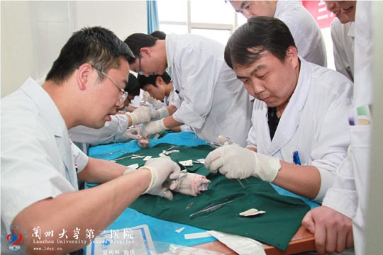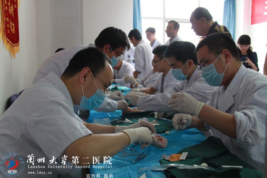 此次参赛选手为主治、住院及进修医师等40余名年轻医师,选手两两配对,在10分钟内将猪蹄的肌腱分离、切断,并按照规定的缝合方法吻合肌腱。吻合肌腱质量好、速度快的获胜。经过紧张激烈的角逐,吴萌、郝俊龙等医师荣获比赛的胜利。