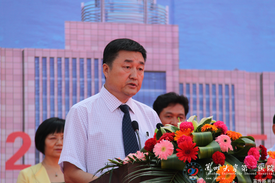 甘肃省卫生厅厅长刘维忠致辞。他指出,作为甘肃省重要的医疗机构之一,兰大二院肩负着甘肃省医疗急救、预防保健和科研教学重任,2号医疗综合楼的兴建是我省医疗卫生事业发展史上的一件大事,是医院发展的现实需要,更是未来发展的必然选择,是改善民生的重要工程,他的建成对方便市民就医、推动全省医疗卫生事业的持续健康发展具有深远的意义。希望兰大二院借此契机,继续实施“以人为本,服务质量为先,内抓管理,外树形象”的治院方针,为甘肃省医疗卫生事业再作新的贡献兰大二院继续以,树立新的形象,开创新的局面。