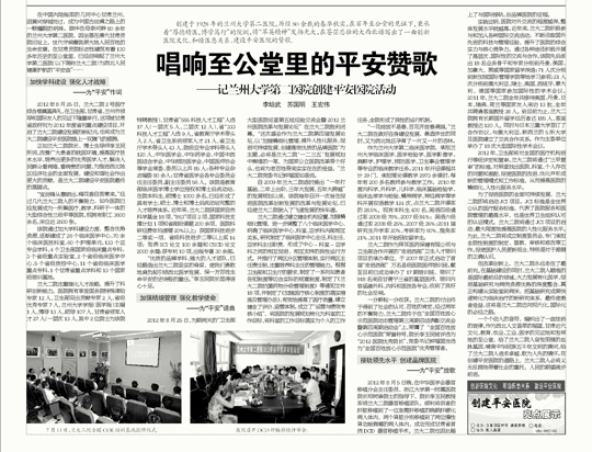 【健康报】唱响至公堂里的平安赞歌——记立博欧赔指数第二医院创建平安医院活动