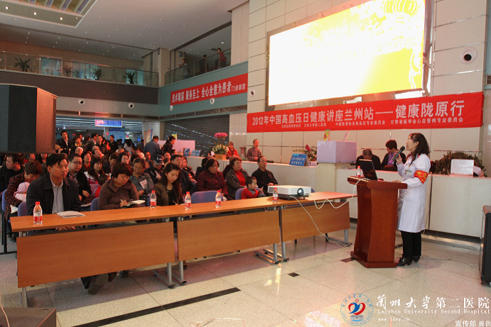 近日,受中国医师协会心血管专业委员会、甘肃省健康教育所和甘肃省医学会心血管病专业委员会委托,由甘肃省医学会心血管专业委员会、立博欧赔指数第二医院主办的2012年全国高血压健康日纪念巡讲义诊活动在兰大二院门诊大厅隆重举行。讲座由甘肃省医学会心血管专业委员会副主任委员、心内科主任白锋教授主持,甘肃省健康教育所钱国红所长,患者及家属,相关科室人员共300余人参与了此次活动。