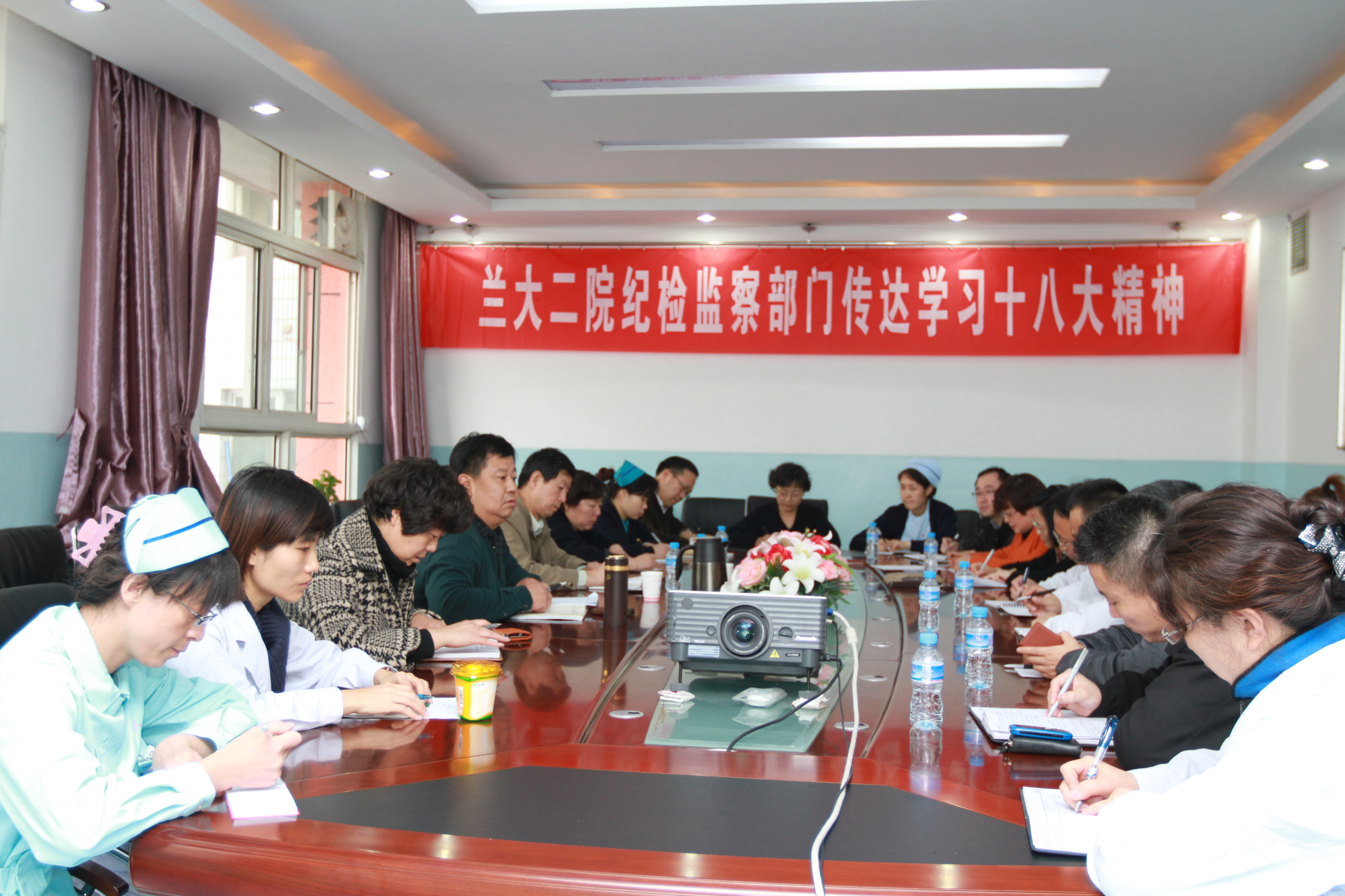 童明辉强调,传达好、学习好、宣传好、贯彻好、落实好十八大精神,是当前和今后一个时期的头等大事和首要政治任务。纪检干部学习贯彻党的十八大精神,要把十八大报告作为学习重点,全面理解、深刻领会、准确把握报告的精神实质,不断加强医院反腐倡廉和医德医风建设,继续推动医院廉政风险防控工作。
