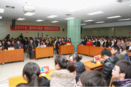 现场座无虚席,参赛队员热情高涨,比赛井然有序,比赛氛围相当浓厚,观众答题环节更是高潮迭起,经过激烈比赛,研究生党支部代表队获得本次比赛的一等奖,行政第二党支部代表队、2009级本科生第一代表队获得二等奖,其它代表队获得三等奖。