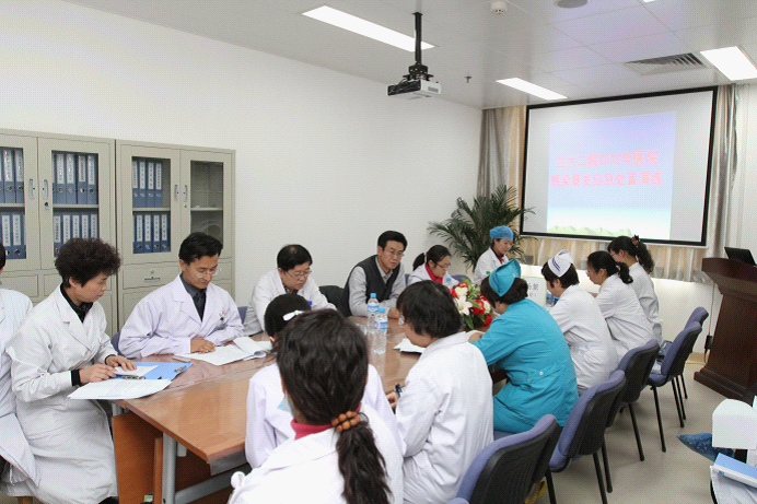 本次演练内容设定外科ICU发生4例多重耐药鲍曼不动杆菌肺部感染病人,经专业人员初步调查分析确定为医院感染暴发,立即向主管领导报告,启动应急预案。院感科专职人员现场采样并进行流行病学调查,医务科组织专家会诊制定救治和隔离方案。参与演练的各部门分工合作,配合默契,演练顺利进行。