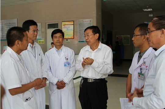 7月23日下午,省卫生厅厅长刘维忠前往岷县人民医院慰问我院奋战在抗震救灾一线的医护人员,听取了我院医疗救援队的工作汇报后,首先转达了省委、省政府、省卫生厅等各级领导对全体队员的亲切慰问,对医疗队前期救援工作予以充分的肯定。他指出:抗震救灾医疗救援要做的工作还很多,队员们一要尽职尽责,确保伤员的生命安全;二要保护好自己,一切行动听指挥;三要继续发扬吃苦精神、奉献精神,不辱使命,确保圆满完成各项抗震救灾医疗救治任务。