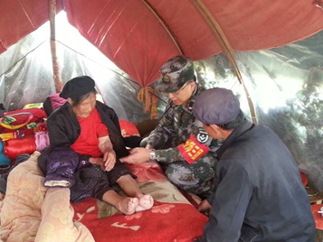 7月25日,我院预备役卫生队队员在经历一整夜暴雨,随时都有泥石流发生的险情后,丝毫没有产生懈怠和畏惧心理,迅速整理进水的帐篷,疏通宿营地旁边的河道。随后,再一次进山徒步6公里执行拆除危房、医疗巡诊双重任务。