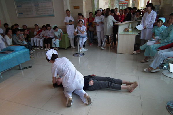 9月25日,根据“三甲”医院评审要求,结合科室工作实际,护理八分部在医院体检中心和急门诊组织所辖科室进行了各类应急预案演练。百余名护理人员参与演练并观摩。
