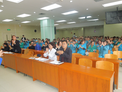 为进一步规范物业管理服务行为,提高物业管理服务质量,树立物业良好形象,按照“三甲”复审的相关要求,结合我院卫生保洁管理现状,10月21日,后勤保障处环卫科组织嘉华物业、萃英绿岛物业公司保洁人员、电梯司机、垃圾清运工及管理人员共200余人进行了“保洁人员院感知识”、“文明用语规范”培训。