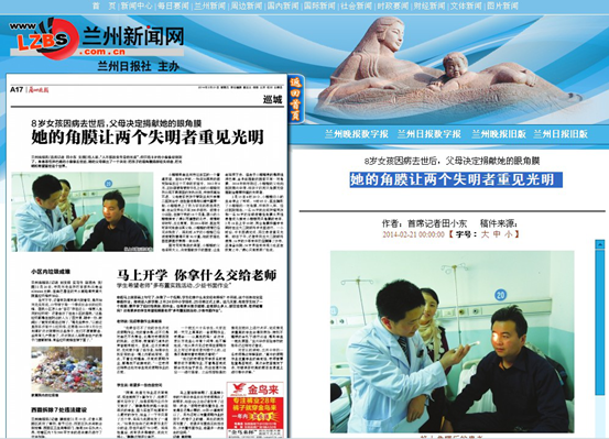 - 上一篇:【兰州日报】璇璇走了,却把光明留在人间[ 02-21 ]