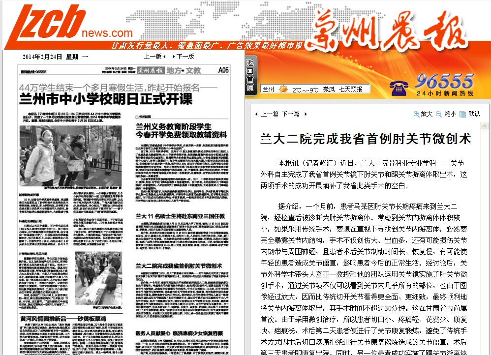 【兰州晨报】兰大二院完成我省首例肘关节微创术