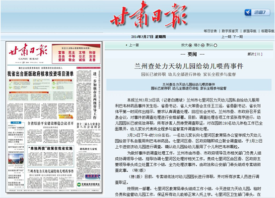 【甘肃日报】兰州查处力天幼儿园给幼儿喂药事件