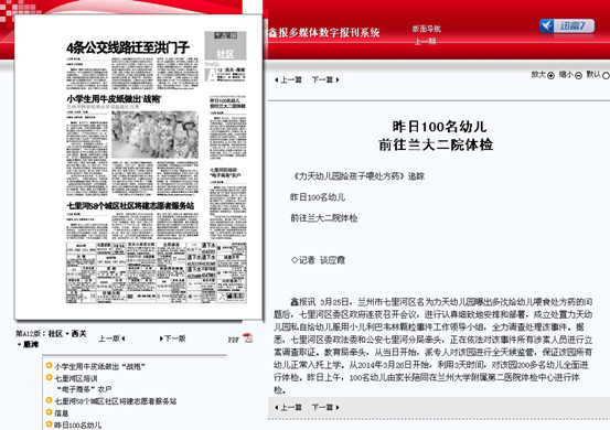 - 上一篇:【甘肃日报】兰州查处力天幼儿园给幼儿喂药事件[ 03-27 ]