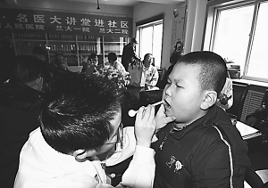 在“名医大讲堂进社区”活动现场,兰大二院口腔科医生肖廷英非常忙碌,她不仅要现场接诊牙病患者,而且还要对每位患者介绍牙病的预防知识。市民孙女士带着10多岁的儿子专门来咨询牙病,肖廷英大夫忙着为母子俩检查了口腔,初步认为母子俩都是龋病。“小朋友,龋病是多因素疾病,主要包括细菌、饮食、唾液、牙齿结构等。你不要害怕,阿姨给你介绍一下怎么预防儿童龋病。”肖廷英说,儿童患龋齿,家长应重视,从小就应开始做好牙齿的保护。要掌握好口腔牙齿的保健方法:从小注意口腔清洁卫生,从小养成早晚刷牙,饭后漱口的习惯;改善饮食结构,平衡膳食有助于孩子的牙齿健康;纠正孩子的不良习惯,孩子吮唇、舐舌,张口呼吸,偏侧咀嚼等会造成儿童的牙颌畸形;每半年带孩子去口腔医院进行口腔检查。
