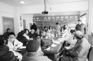 昨日上午8时许,很多居民早早来到郑家台社区2楼会议室。记者发现,与前三场“名医大讲堂”活动不同的是,这次活动的参与者中除了老人外,首次出现了儿童和青年人的身影。上午8时30分,活动在一片热闹的气氛中展开。现场的很多居民得知,省属三家大医院派出了妇科、儿科、口腔、眼科、消化、综合内科等科室的专家后,他们纷纷给家人、邻居和朋友打电话,不到一小时,活动现场已经挤满了人。