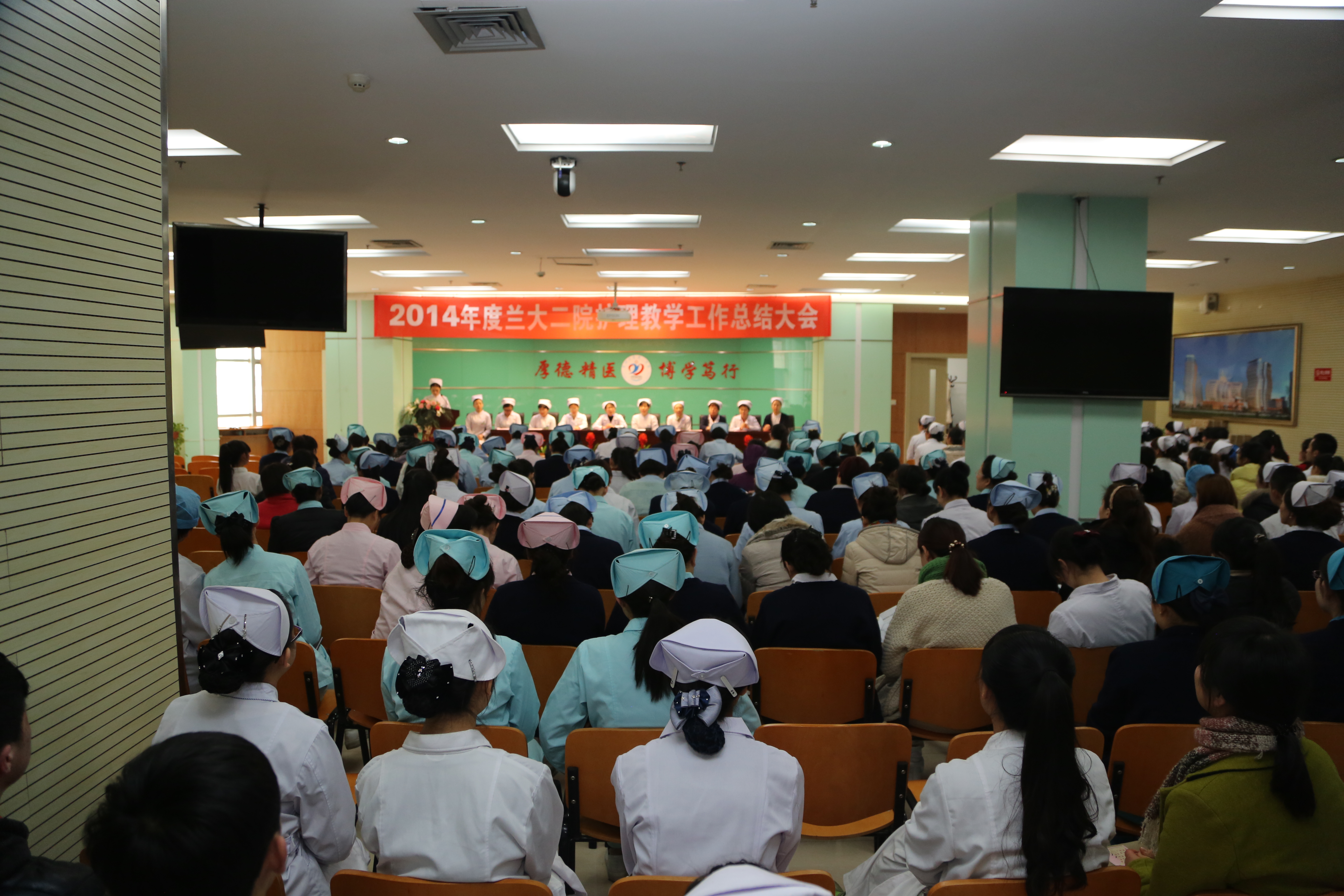12月22日下午,在综合楼五楼会议室举行兰大二院2014年度教学工作总结大会。护理部主任、分部主任、护士长出席了会议,科室教学秘书、实习生代表共300余人参加总结大会。