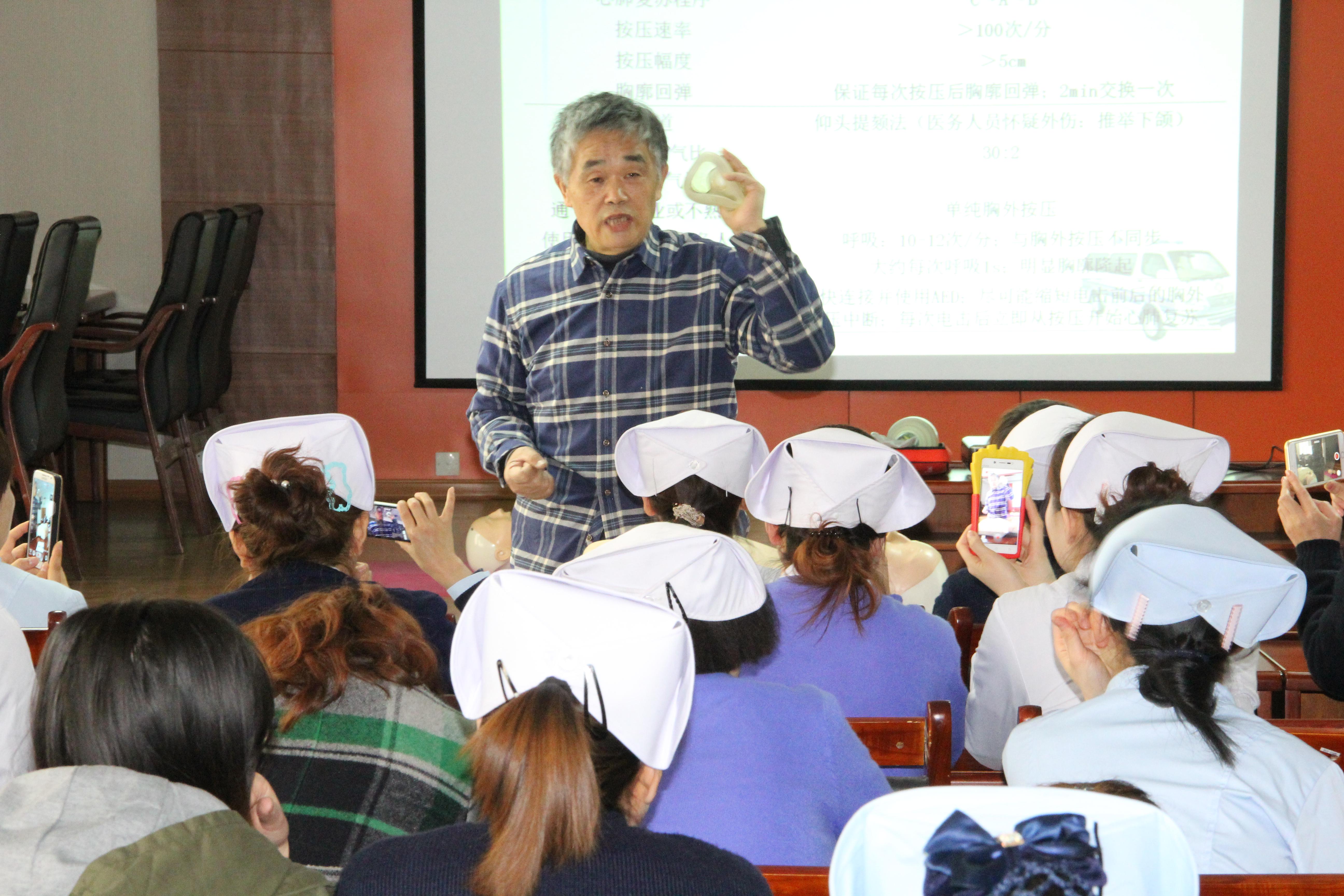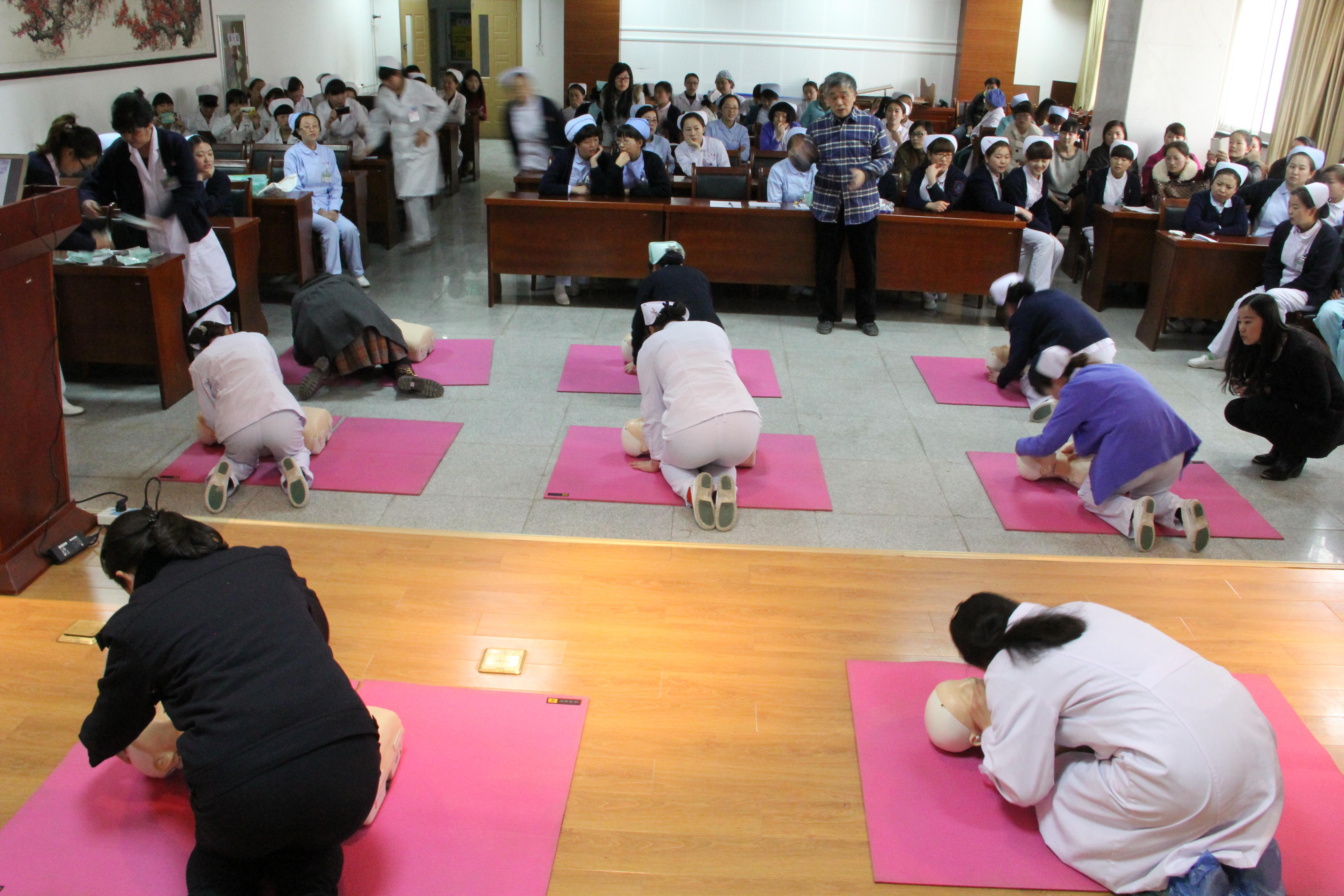 2015年3月4日下午,康泰分院护理部举办了护理人员心肺复苏培训,分院100多名护理人员参加了培训。培训特邀了美国心脏协会心血管急救培训中心首席导师杨纬主任主讲。杨纬从心脏骤停与心肺复苏的意义、心肺复苏的历史回顾和心肺复苏紧急救护的基本原则、方法与步骤等方面进行了详细讲解,并现场示教。讲解结束后护士进行模拟操作,杨主任逐一指导。