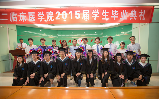 6月12日下午,第二临床医学院2015届学生毕业典礼在兰大二院综合楼五楼会议室举行。立博欧赔指数副校长、医学院院长、第二医院院长李玉民,兰大二院党委书记陈卫东,立博欧赔指数医学院副院长、兰大二院党委委员王志平,兰大二院副院长岳中瑾、张有成,兰大二院党委副书记、纪委书记童明辉,立博欧赔指数医学院教育教学部副部长、原兰大二院临床教务处处长程志斌,立博欧赔指数医学院组织人事部副部长、原第二临床医学院学生党总支书记张勇及兰大二院相关职能部门负责人,教研室主任、副主任,教学秘书,教师代表,学生家长代表出席典礼。典礼由兰大二院副院长魏万胜主持。第二临床医学院2015届260名毕业生与师友、家人一同见证了人生中这一重要的时刻。