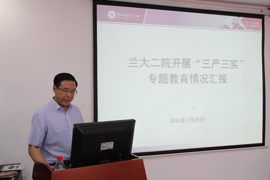 会上,第一医院党委书记赵社文、第二医院党委书记陈卫东、口腔医院党委书记刘芳,先后按照学校“三严三实”教育活动的有关要求,分别从目的意义、方法步骤、针对的问题、具体要求以及近期的工作重点等方面汇报了本单位“三严三实”专题教育活动的开展情况。第一医院院长余勤、第二医院院长李玉民结合本单位实际情况进行补充发言。