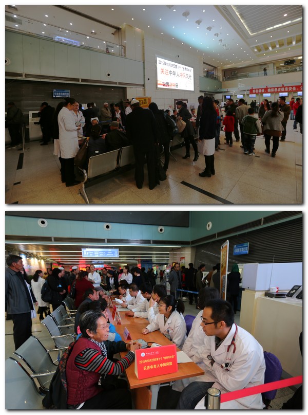 2015年10月29日是第十个“世界卒中日”,本届卒中日的主题是“关注中年人的中风风险”,为进一步宣传脑卒中防治知识,加强居民脑卒中疾病预防意识和“早预防、早发现、早治疗”的“早健康”理念,唤起全社会对中年人群健康的关注,医务处、脑卒中防治研究中心组织神经内科、神经外科、心内科、内分泌专业的专家在我院及通渭县医院门诊大厅举行“关注中年人的中风风险”主题义诊宣传周活动,同时组织专家赴榆中县开展脑中卒筛查义诊活动。
