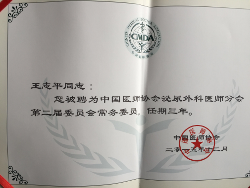 王志平教授被聘为中国医师协会泌尿外科医师分会第二届全国常委