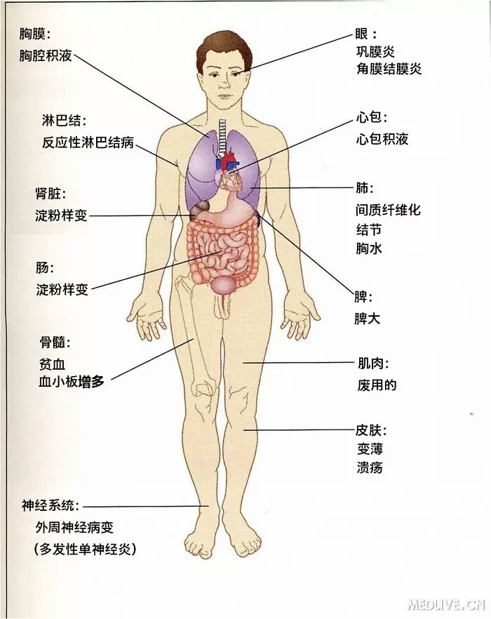 类风湿关节炎除了关节表现以外,可出现多系统损害,其关节外表现主要有以下方面: