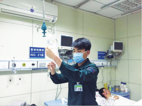 毛吉飞在内科ICU工作3年了,新婚不久的他,无法给妻子一个蜜月,便马上投入到繁忙的工作中。刚开始参加工作的时候,他显得很失落,由于观念的问题,很多患者无法接受男护士,“当时我也有过消极心理。”他说,后来逐渐与患者建立了深厚的情谊,又重拾了信心。“在护理的过程中,他们会亲切地称呼我为‘老师’,我很开心,这是对我们工作的一种肯定。”毛吉飞说。