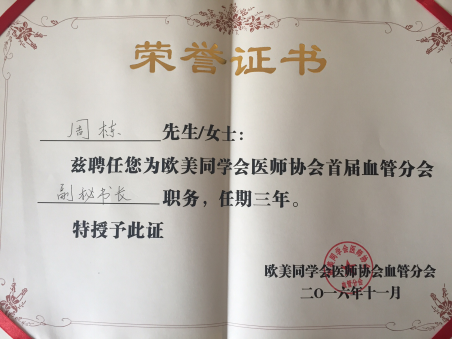 兰大二院周栋当选欧美同学会医师协会血管分会副秘书长