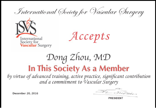 兰大二院周栋入选国际血管外科学会(ISVS)会员