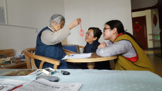 志愿者为老人们表演了精心准备的文艺节目,帮他们按摩,教他们做简单的手指操。在志愿者的感染下,老人们也唱起了熟悉的老歌,快乐和幸福洋溢在他们脸上。最后,志愿者们走进老人们的房间,给他们送去小礼物,陪他们聊天、唱歌、剪指甲……