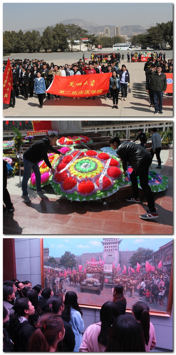 4月1日上午,全体学工人员、学生党员和入党积极分子代表在华林山烈士陵园英雄纪念碑前举行悼念活动,深切缅怀革命先烈的丰功伟绩。在高高耸立的烈士纪念碑前,全体同志佩戴党徽、团徽和白花,手握菊花,整齐列队,神情肃穆,向革命先烈鞠躬、敬献鲜花和花圈。随后,又参观了兰州战役馆和红星照耀馆,在导游的讲解下,革命先烈们“抛头颅,洒热血,赴汤蹈火,舍生取义”的场面展现在每一位同志的眼前,让他们深切地体会到现在美好生活的来之不易,更加坚定了他们“秉承先辈遗志,发扬民族传统”的爱国主义信念。