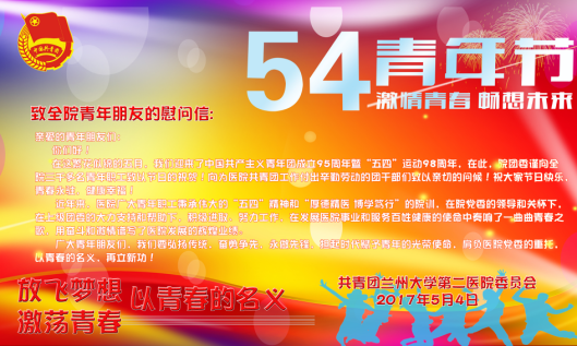 当天上午,医院团委在门诊大厅电子屏播放“五四”纪念活动宣传海报,并向广大青年致公开信,向青年职工们致以节日的问候,希望广大青年职工不忘初心,弘扬传统、积极进取、努力工作、为医疗卫生事业及百姓健康做出更大贡献。