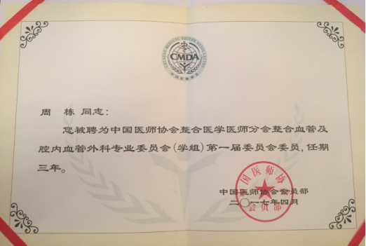 兰大二院血管外科主任周栋当选中国整合血管及腔内血管外科专业委员会委员