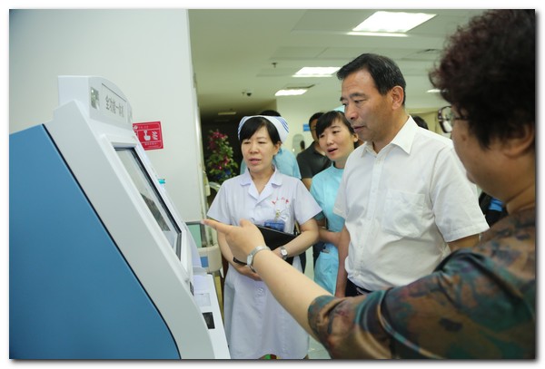 钟福国一行还前往门诊大厅、药房窗口、消化科病区就床旁结算、预约挂号等便民措施的开展情况进行了了解。