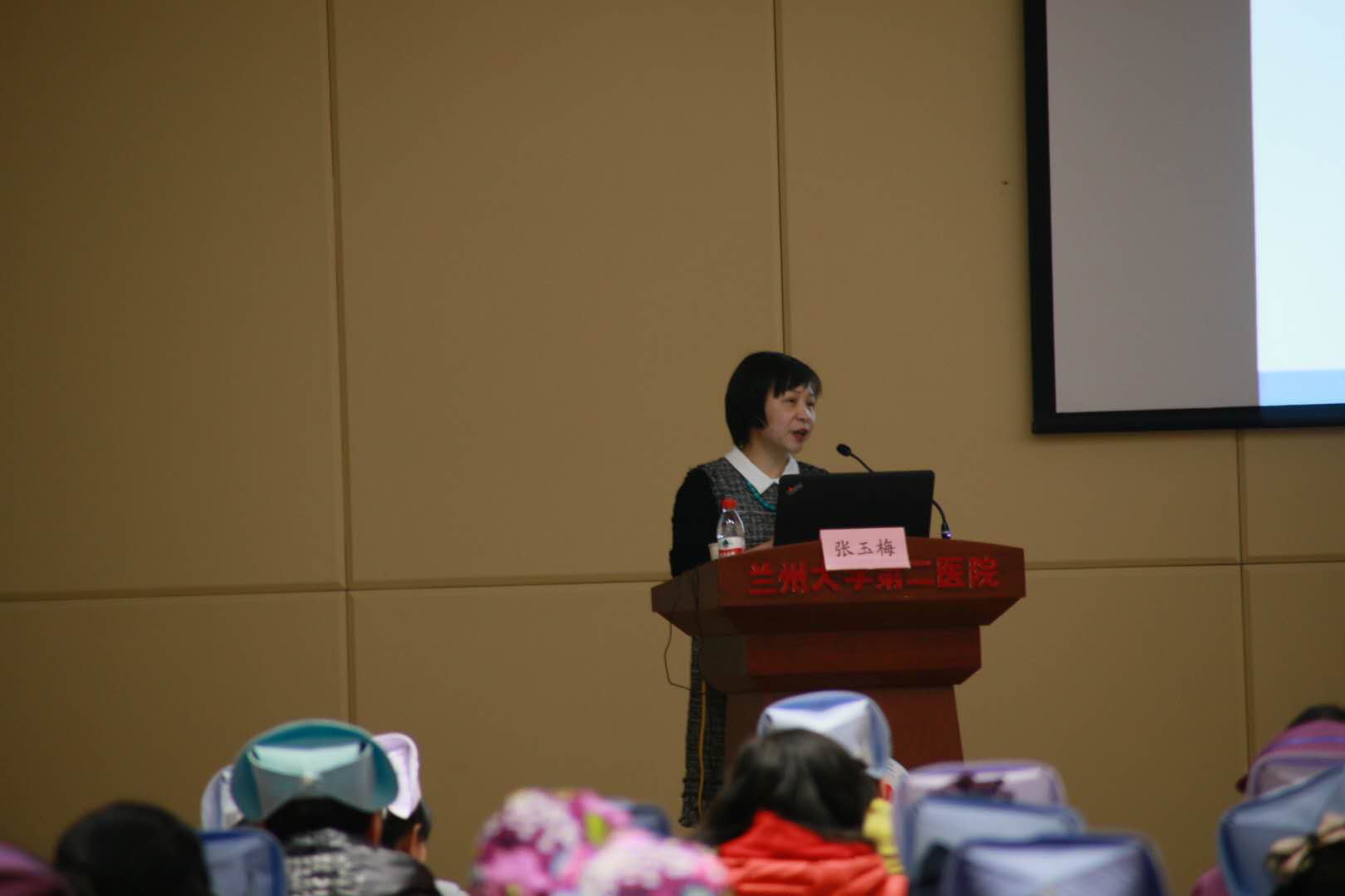 1月13日下午,陆军军医大学新桥医院张玉梅在二号医疗综合楼报告厅为护理人员作专题讲座。全院护士长及各科室骨干、外来进修护理人员聆听了讲座。会议由护士培训科科长张军红主持。
