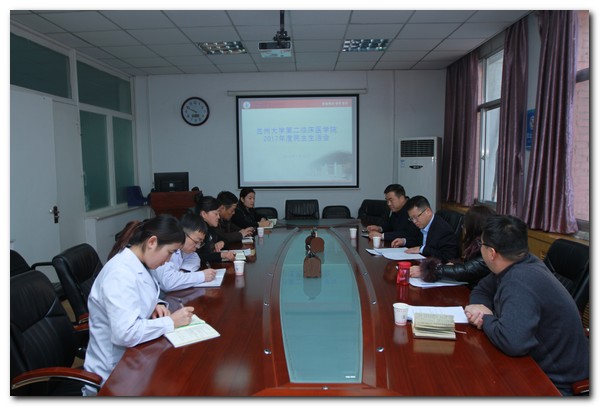1月16日,第二临床医学院领导班子在行政楼四楼会议室召开2017年度民主生活会,学校督导小组成员、第三纪工委书记、监察处副处长王宣到会指导,各科室负责人列席会议。