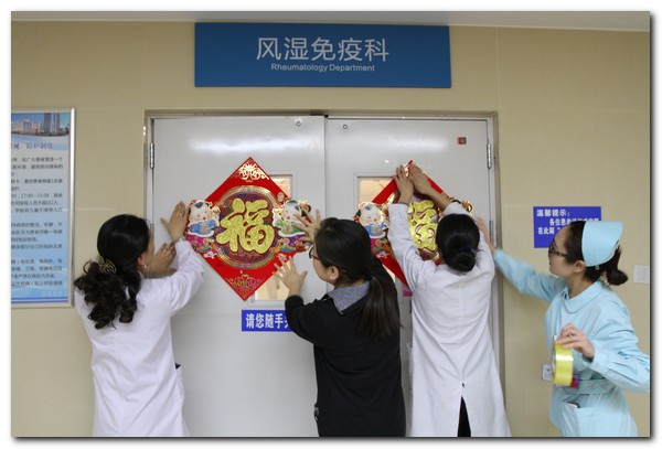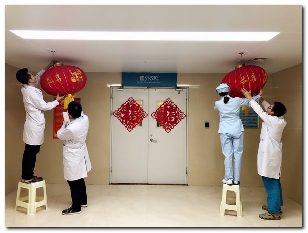 2月12日,我们来到了骨科、风湿免疫科、普外5科,在保障好节前各项医疗服务的同时,医护人员与患者家属一起贴着对联、窗花、灯笼,整个诊区洋溢着浓浓的过年气氛,也让因为工作不能过年回家的医护人员和患者感受到节日的气氛,科室全体人员也向大家送上新春的祝福。