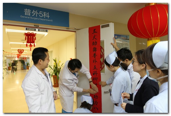 “金鸡高歌兰大二院健康梦绘就六个一流、玉犬劲舞普外5科柳叶刀助力八大工程”。普外5科全体医护人员给全院职工拜年啦!