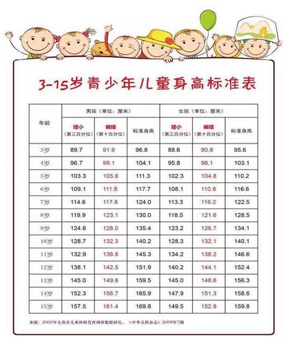 对比下表,看看孩子的身高发育是否“输”在了起跑线上。