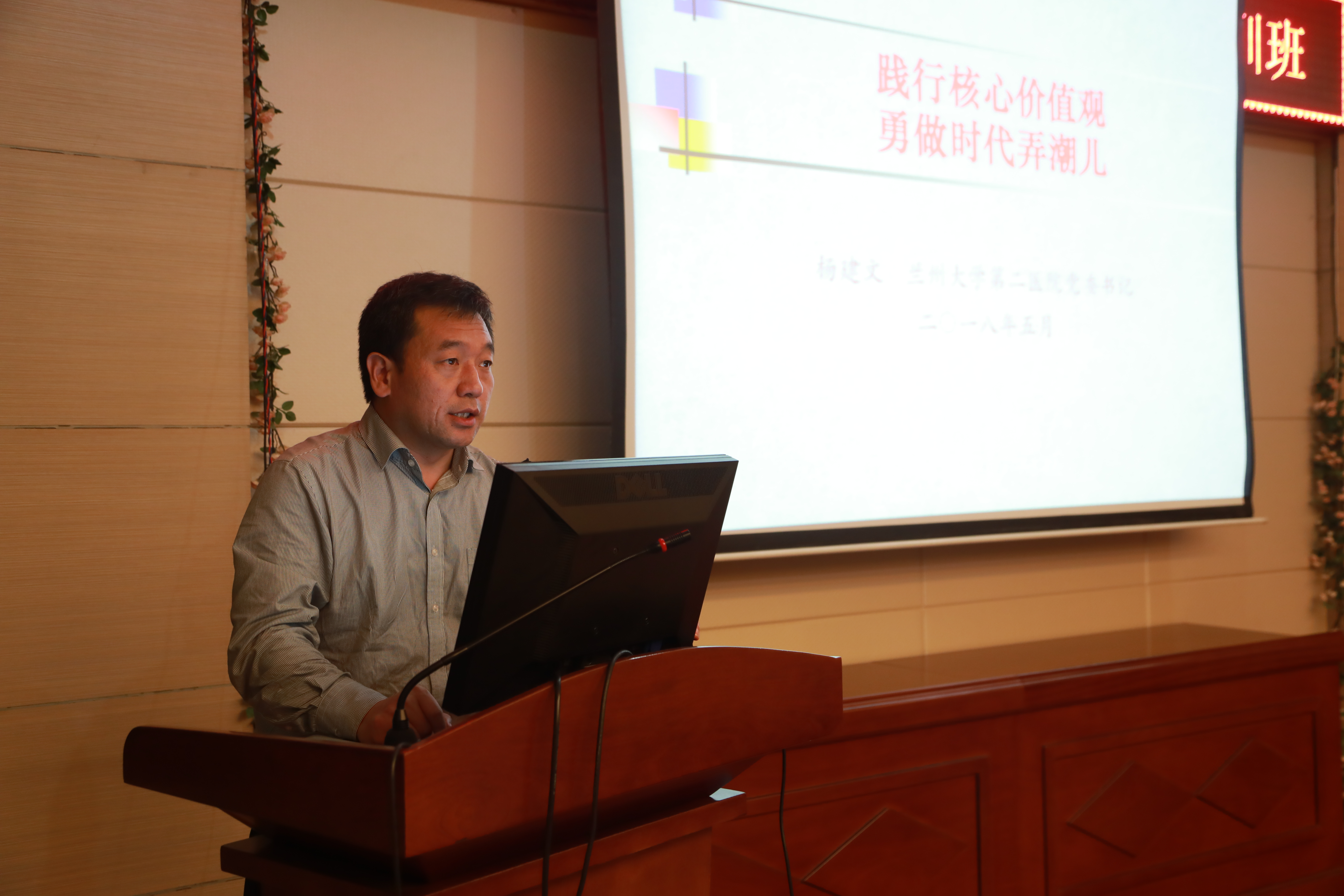 杨建文为全体学员作题为《践行核心价值观 勇做时代弄潮儿》的专题讲座。他全面深刻地阐述了青年在实现中华民族伟大复兴、国家改革发展新征程中所肩负的责任和使命。青年正处在价值观形成和确立的时期,应做到勤学,修德,明辨,笃实,只有树立正确的世界观、人生观、价值观,才能坚守在中国大地上形成和发展起来的社会主义核心价值观,在时代大潮中建功立业,成就自己的宝贵人生。最后,他鼓舞和激励团干们志存高远、脚踏实地,勇做时代的弄潮儿,在建设新时代一流研究型大学医院的生动实践和坚实生活中不懈奋斗,书写好自己的人生华章。