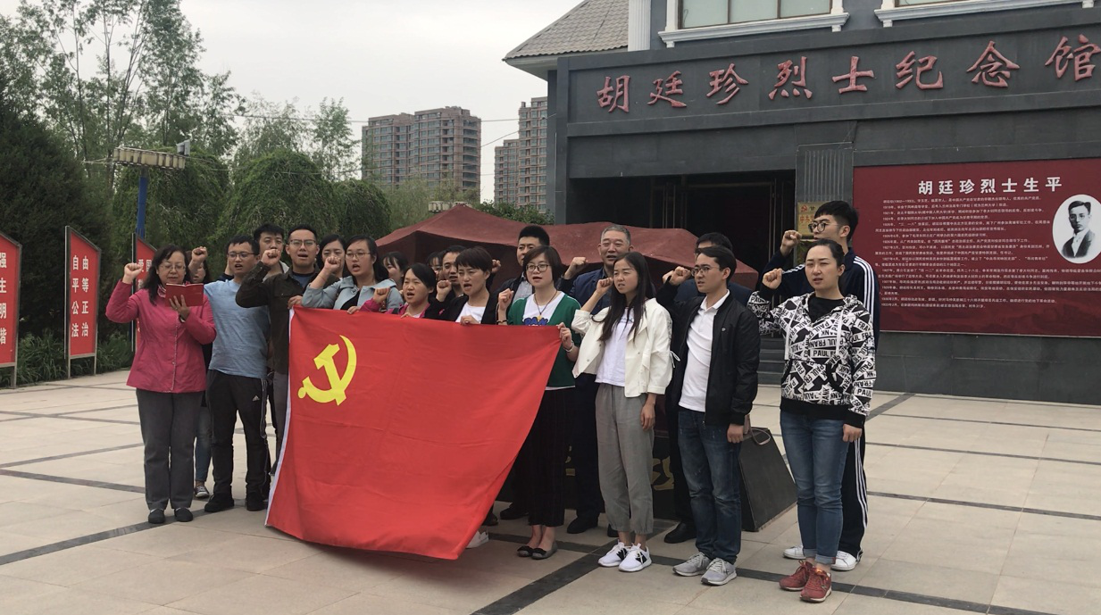 在鲜红的党旗下,全体党员干部庄严宣誓,重温入党誓词,进一步坚定了理想信念。随后,在讲解员的引领下,全员认真聆听英烈革命事迹介绍,观摩了纪念馆陈列的各种历史资料。通过参观了解胡廷珍烈士遗像和生平简历,使大家真切地感受到中共甘肃党组织的早期领导人胡廷珍烈士曲折坎坷而又极富传奇色彩的革命生涯。在革命战争年代,一名共产党人为了寻求真理、走向光明表现出不畏艰险、勇于斗争、百折不挠、不怕牺牲的革命豪情和战斗精神,这种革命先烈的英雄气概,是我们不断追求学习的。