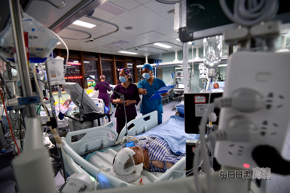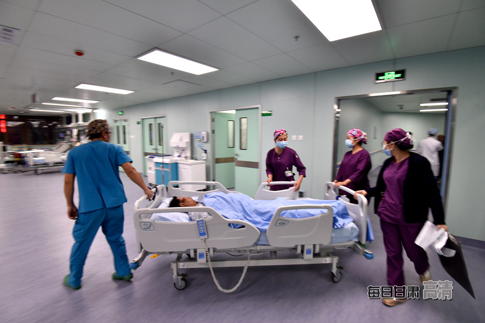 作为ICU病房,凌晨治疗紧急患者时常出现。凌晨2时,有急症患者转至神经外科ICU病房,马瑞霞与同事们将患者推入病房内。