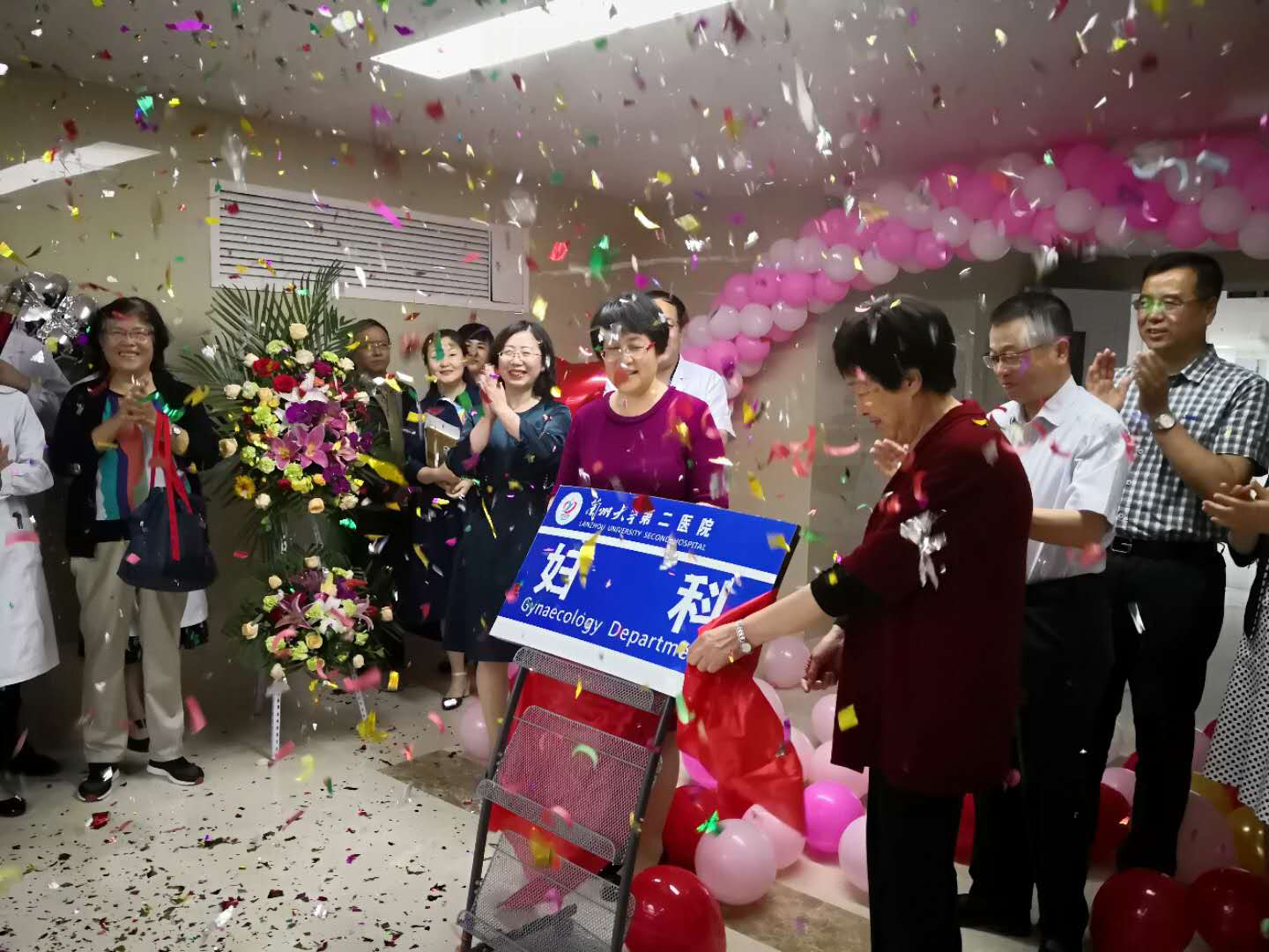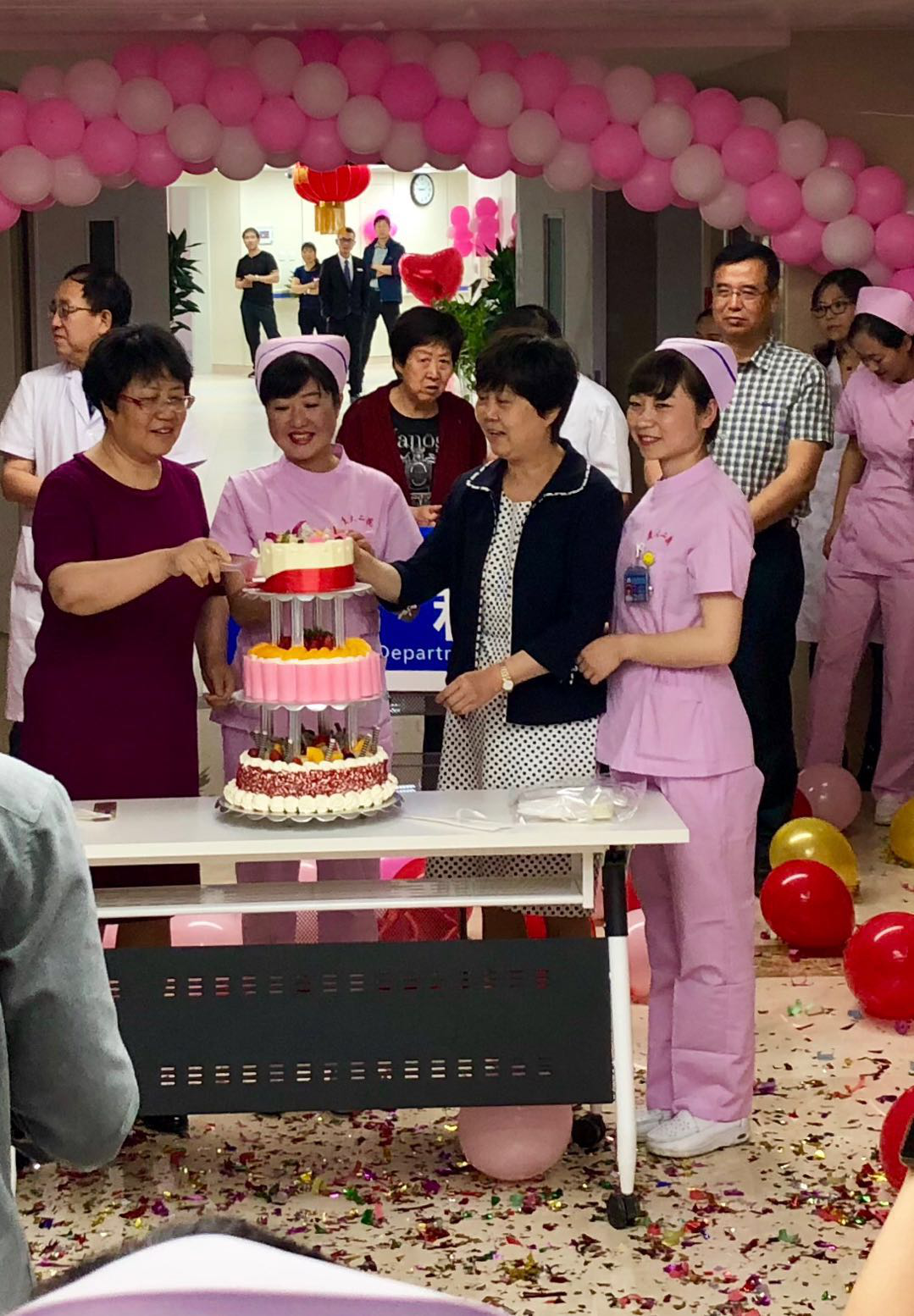 郭钰珍向大家详细介绍妇科人员配备及病区环境情况。据了解,妇科现有医生16名、护士28名,东、西两个病区共计82张床位,能充分满足我院妇科日常工作的开展和今后发展需求。同时,张文芳和妇科老前辈高云荷教授同时揭牌并合影留念,与妇产科学系主任高峻一起切蛋糕庆祝。