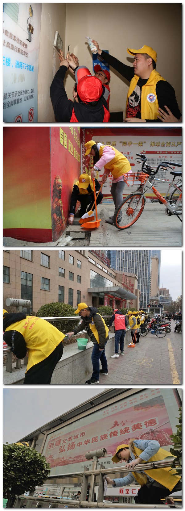启动仪式后,100余位青年志愿者按照区域分工,团结协作,对医院及周边进行了大规模的卫生清理和整治,同时还积极进行控烟宣传,发放控烟宣传册并积极劝阻吸烟行为。