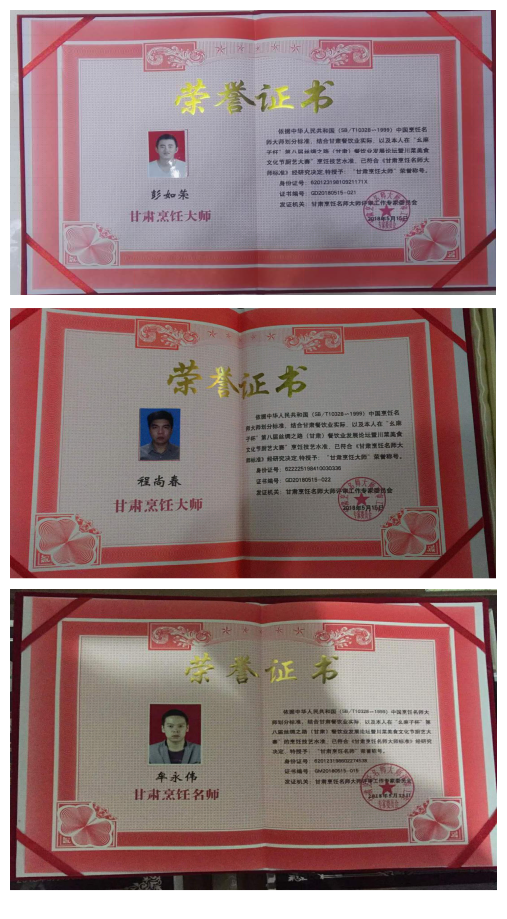近日,由甘肃商业联合会饭店餐饮协会和中国饭店协会甘肃名厨委员会举办的“第八届丝绸之路(甘肃)餐饮业发展论坛暨川菜美食文化节厨艺大赛”已圆满落幕。兰大二院膳食科食堂厨师长彭如荣、程尚春、牟永伟代表兰大二院参赛,分别在此次大赛中荣获“甘肃烹饪大师”“甘肃烹饪名师”荣誉称号。