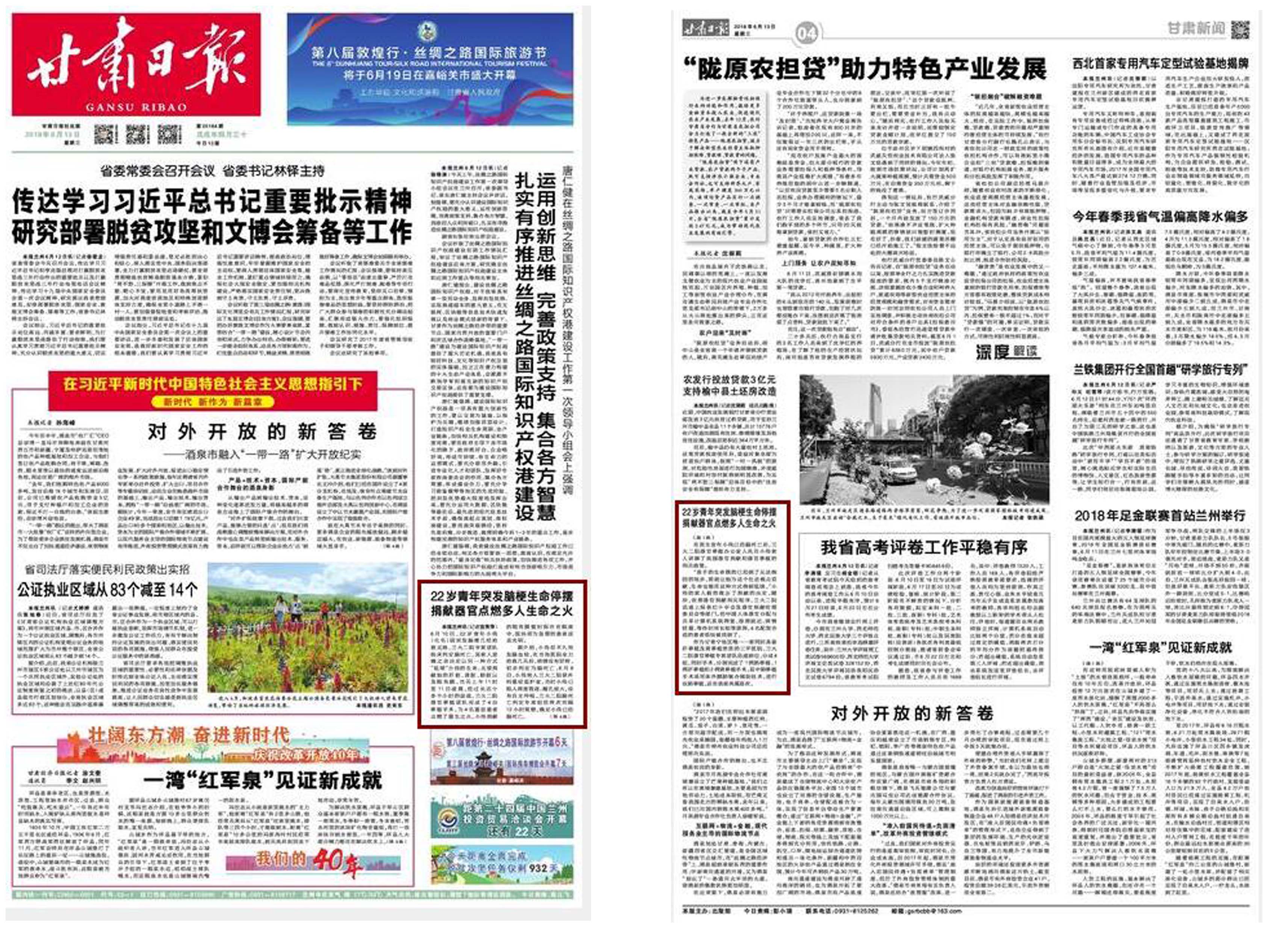 【甘肃日报】22岁青年突发脑梗生命停摆 捐献器官点燃多人生命之火